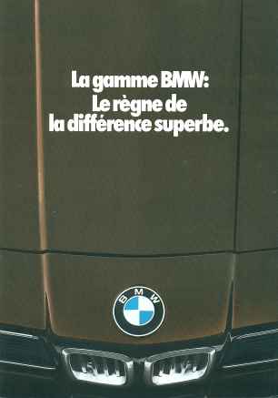 La gamme BMW du millésime 1979 s’étend de la 316 (1573 cm3, 90 ch) à la toute récente 635 CSI (3453 cm3, 218 ch), juste avant que n’arrive la M1. A l’époque, les séries en production sont les berlines compactes 3, les routières 5, les coupés 6 et enfin les prestigieuses 7 présentées l’année précédente. Le catalogue, en langue française pour la France, comprend 16 pages, format A4, largement illustrées de photos en situation, et parfois en mouvement, chaque série étant présentée sur une double page avec les caractéristiques sommaires. Une autre double page est consacrée à la compétition et aux "art cars". Référence : BM006007-01 Prix du catalogue : 6 ? |