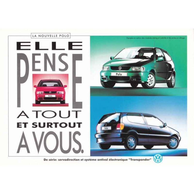 Contenu : VW Polo 1043 cm3 45 ch / 1296 cm3 55 ch / 1598 cm3 75 ch / Diesel 1896 cm3 64 ch, caractéristiques sommaires, équipements, coloris