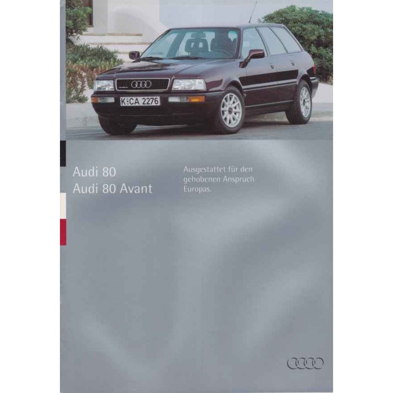 Contenu / Content : Audi 80 / Avant 1,6 E 1595 cm3 100 ch / 2,0 S 1984 cm3 90 ch / 2,0 E / Quattro 1984 cm3 115 ch / 2,3E / Quattro 2309 cm3 133 ch / 2,6E / Quattro 2598 cm3 150 ch / 2,8E / Quattro V6 2771 cm3 174 ch / TD 1896 cm3 75 ch / TDI 1896 cm3 90 ch, caractéristiques sommaires, équipements, coloris