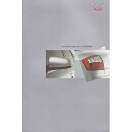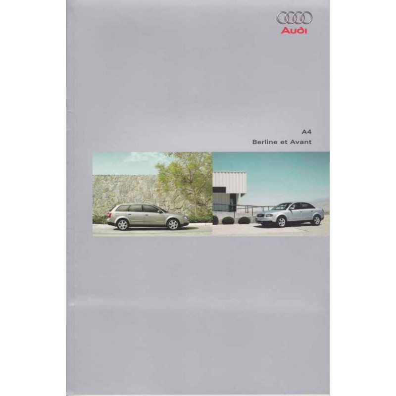 Contenu / Content : Audi A4 / Avant 1,6 1595 cm3 102 ch / 1,8 T 1781 cm3 163 ch / 2,0 E 1984 cm3 130 ch / 2,0 E 1984 cm3 150 ch / 2,4 E 2393 cm3 163 ch / 3,0 E 2976 cm3 220 ch / 1,9 TDI 1896 cm3 100 ch / 1,9 TDI 1896 cm3 130 ch / 2,5 TDI 2496 cm3 163 ch / 2,5 TDI 2496 cm3 180 ch, caractéristiques, équipements, coloris, 2 catalogues sous pochette