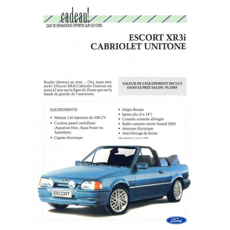 Catalogue Ford Escort Cabriolet XR3i Unitone, 01/1990,