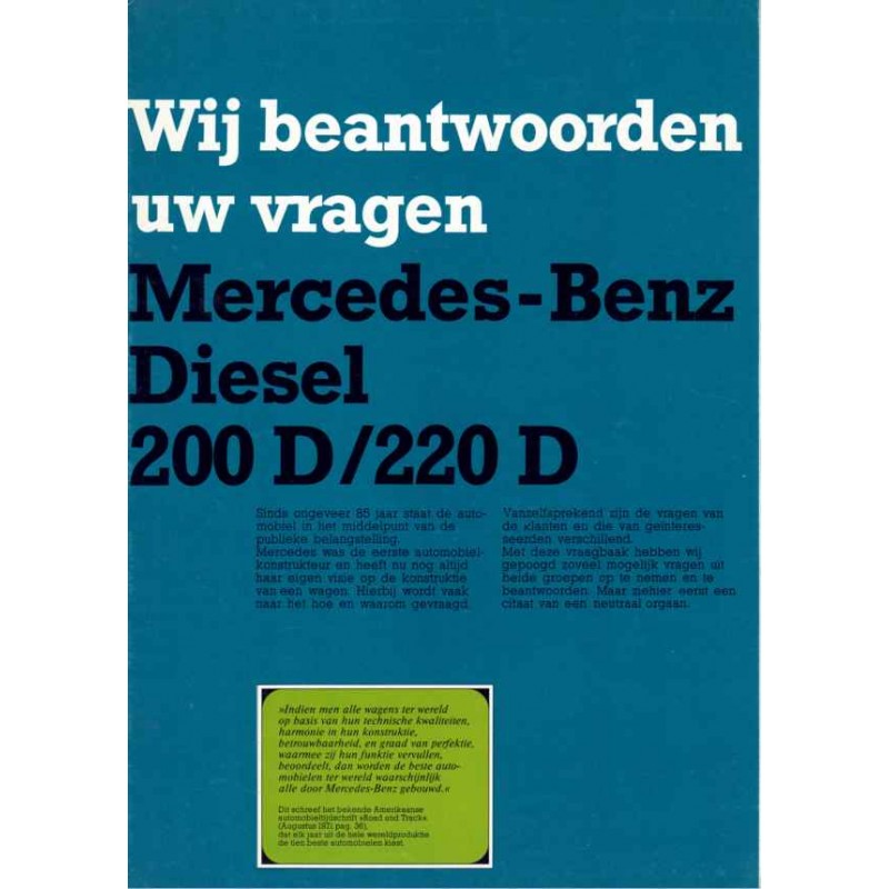 Catalogue Mercedes 200D / 220D W115, 12/1971 ref Mercedes WZ 1425 00 14 1271
