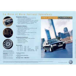 Contenu : VW Bora / Variant Speedway 1595 cm3 102 ch / 1598 cm3 105 ch / 1984 cm3 115 ch / TDI 1896 cm3 100 ch / TDI 1896 cm3 130 ch, caractéristiques sommaires, équipements, prix