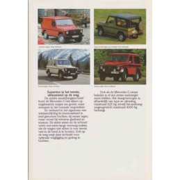 Contenu : Mercedes G 4x4 230GE 2299 cm3 125 ch DIN / 280GE 2746 cm3 156 ch DIN / 240GD 2399 cm3 72 ch DIN / 300GD 2998 cm3 88 ch DIN, caractéristiques sommaires