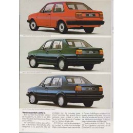 Contenu : VW Jetta C/CL 1272 cm3 55 ch DIN / C/CL 1595 cm3 75 ch DIN / CL/GL/Carat 1781 cm3 90 ch DIN / GT 1781 cm3 112 ch DIN / C/CL/GL Diesel 1588 cm3 54 ch DIN / C/GL/Carat Turbo Diesel 1588 cm3 70 ch DIN, caractéristiques sommaires, équipements, coloris
