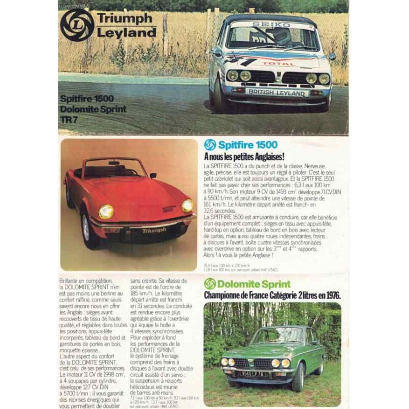 Contenu : Triumph Spitfire 1500, Dolomite Sprint, TR7, caractéristiques sommaires