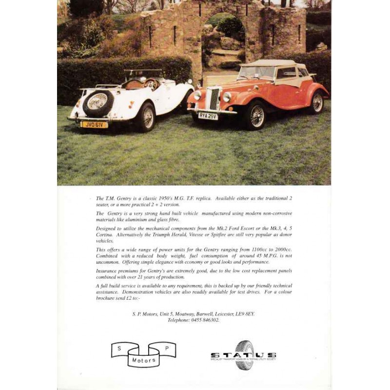 Contenu : SP Motors Gentry : Réplique de MG TF basée sur une mécanique Ford Escort ou Cortina (1100 à 2000 cm3)