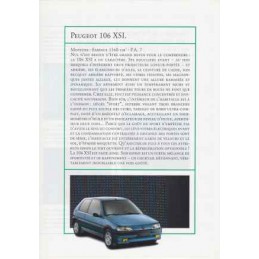 Contenu / contenu : Peugeot 106 XN 954 cm3 45 ch / XN/XR 1124 cm3 60 ch / XR/XT 1360 cm3 75 ch / XSI 1360 cm3 95 ch / XND/XRD/XTD 1360 cm3 50 ch, caractéristiques, équipements,