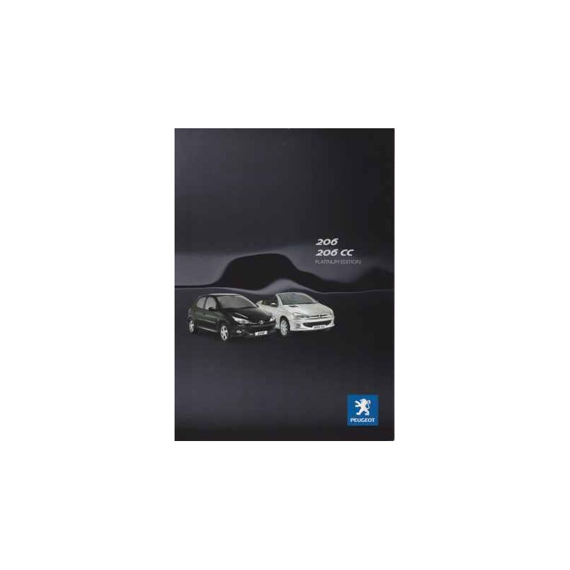Contenu : Peugeot 206 / CC Platinum 1597 cm2 109 ch / HDI 1997 cm3 90 ch / HDI 1597 cm3 110 ch, caractéristiques sommaires, equipements, coloris, prix