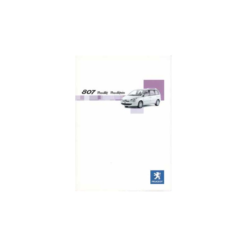 Contenu : Peugeot 807 Family / Family Plus 1997 cm3 138 ch / 2230 cm3 160 ch / 2946 cm3 211 ch / HDI 1997 cm3 110 ch / HDI 2179 cm3 130 ch, caractéristiques sommaires, équipements, coloris