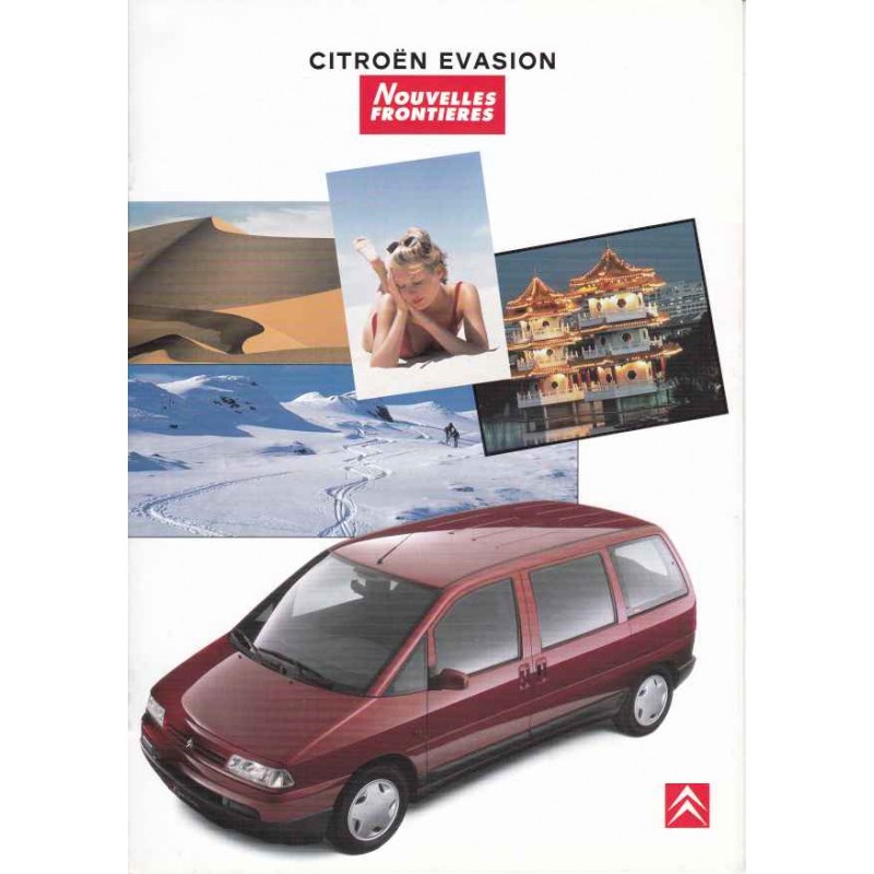 Contenu : Citroen Evasion Nouvelles Frontières 1761 cm3 100 ch / 1998 cm3 123 ch / Turbo Diesel 1905 cm3 90 ch / Turbo Diesel 2088 cm3 110 ch, caractéristiques, équipements, coloris