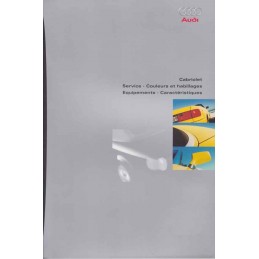 Contenu / Content : Audi Cabriolet 2,0 E 1984 cm3 115 ch / 2,6 E 2598 cm3 150 ch / 2,8 E 2771 cm3 174 ch / 1,9 TDI 1896 cm3 90 ch, caractéristiques, équipements, coloris, 2 catalogues sous pochette