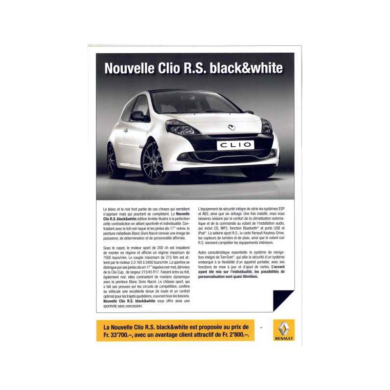 Catalogue Renault Sport Clio Black & White, ref Renault :