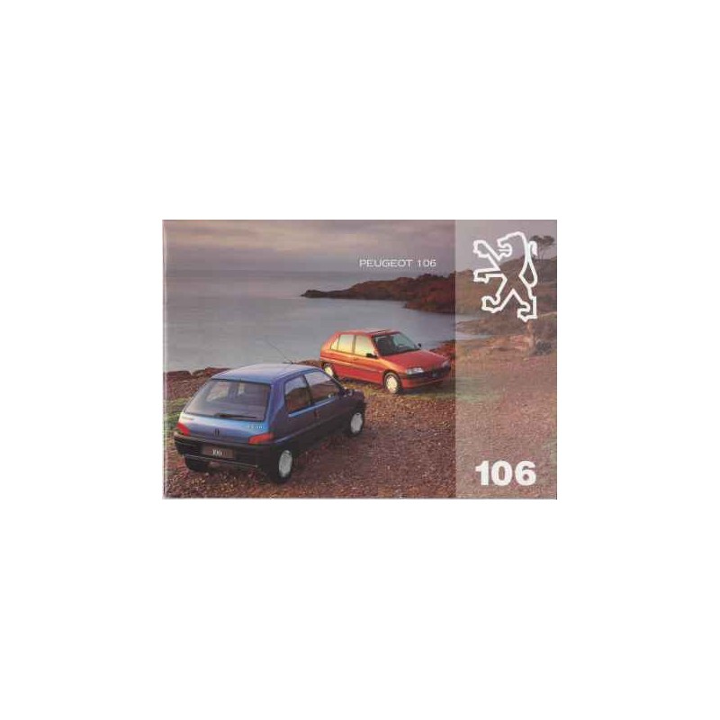 Contenu / contenu : Peugeot 106 XN/XR/XT 1124 cm3 60 ch / XR/XT 1360 cm3 75 ch / XS/XT 1587 cm3 90 ch / XSI 1597 cm3 105 ch / XND/XRD/XTD 1528 cm3 58 ch, caractéristiques, équipements, coloris, comprend 5 dépliants + un feuillet coloris + un feuillet accessoires