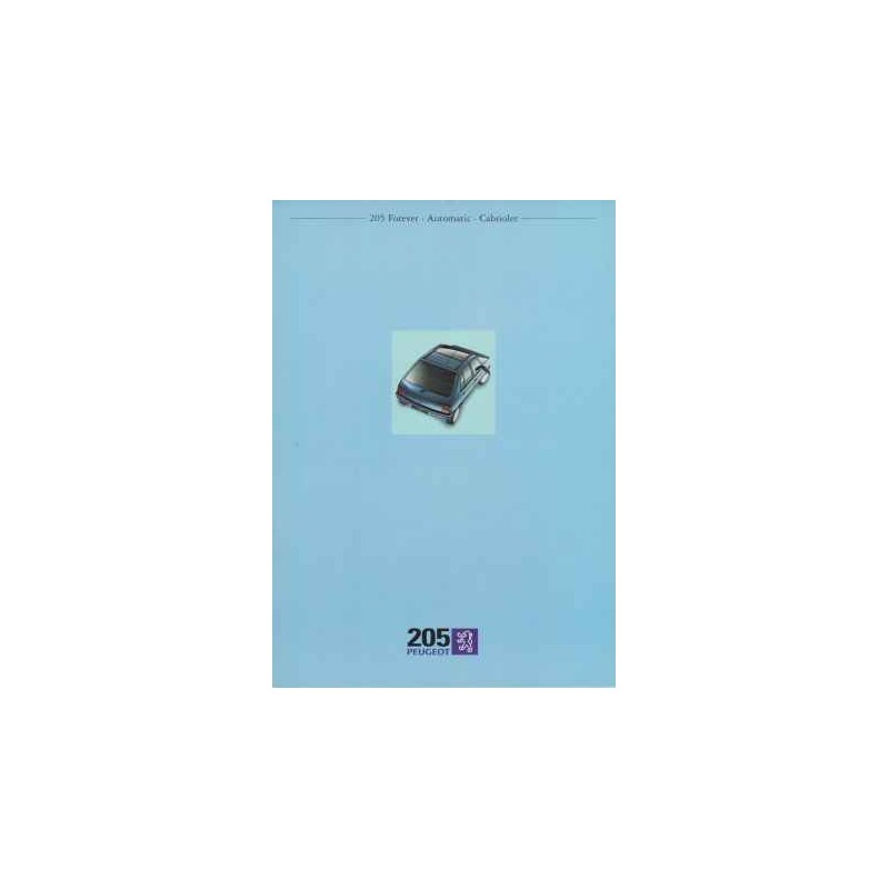 Contenu : Peugeot 205 Forever 1124 cm3 60 ch / Forever / Cabriolet 1360 cm3 75 ch /Automatic 1580 cm3 89 ch / Forever D 1905 cm3 64 ch, caractéristiques, équipements,