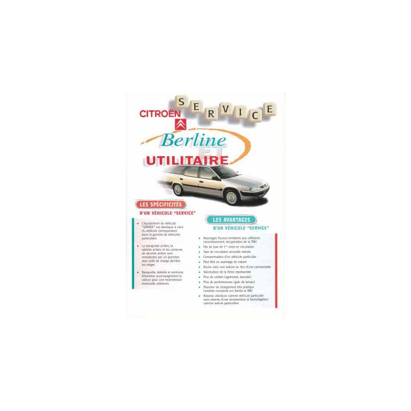 Contenu : Citroen Service Saxo / Xsara / Xsara Break / Xantia break / XM break, caractéristiques sommaires